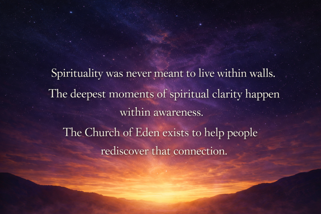 The Church of Eden exists to awaken humanity to God’s eternal frequency, where fear is dissolved forever and the infinite potential of every soul is fully realized.